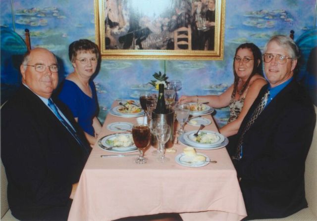 Formal dinner on a Caribbean cruise. (Check the braids!) |
